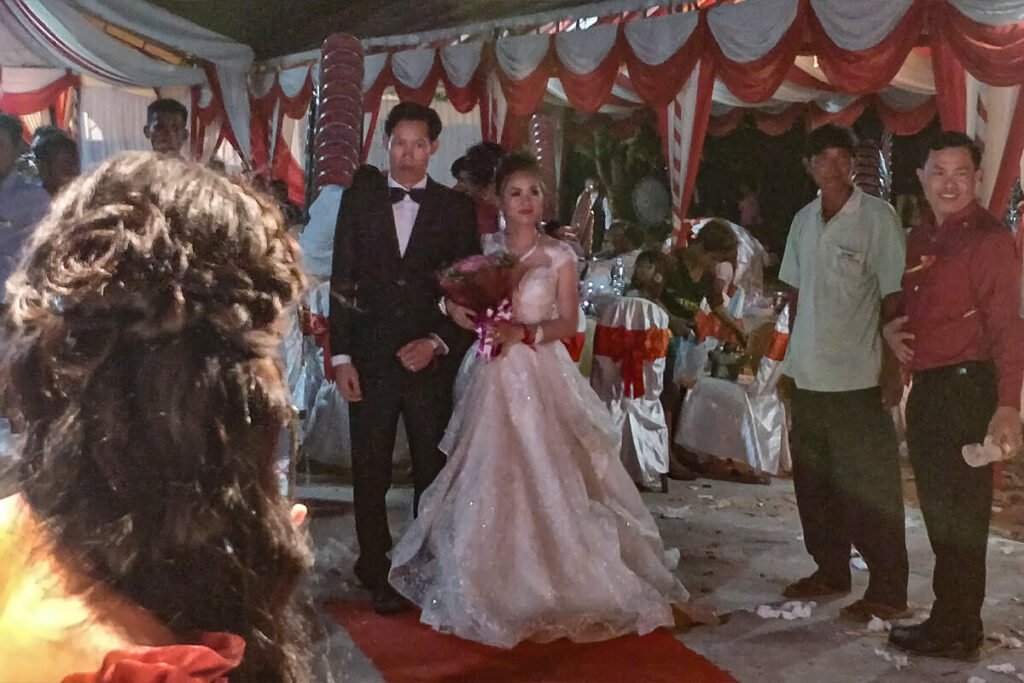 Arrivano gli sposi. Lui in smoking, lei in abito bianco: un classico. La folla si apre, loro danzano al centro della pista. A un certo punto, lo sposo si avvicina a me e mi dice qualcosa in cambogiano. Non capisco una parola. Suo fratello interviene, gli spiega chi sono, poi iniziano a parlare tra loro con un’intensità che mi mette a disagio. Stanno discutendo? Ho fatto qualcosa di sbagliato? Forse la mia presenza non è gradita. Sono pronto ad andarmene a fanculo!
